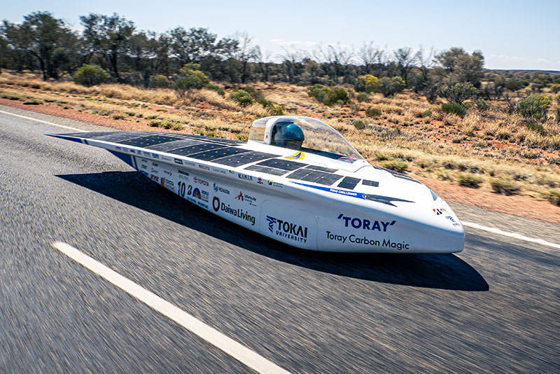 東レ・カーボンマジックは、2025年8月24日~31日に開催された世界最大級のソーラーカーレース「Bridgestone World Solar Challenge 2025(BWSC2025)」において、東海大学ソーラーカーチームの新型車両「2025年型Tokai Challenger」の車体構造の軽量化を技術支援しました。同チームは日本勢トップとなる総合5位に入賞し、無事に大会を完走しました。