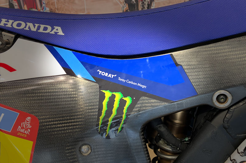東レ・カーボンマジック(TCM)は、今年も Monster Energy Honda Team のテクニカルサプライヤーとして、CRF450 RALLY の開発に協力しています。2026年1月3日~17日に開催されるダカールラリー2026は、W2RC世界ラリーレイド選手権のシーズンオープニングに位置づけられる大会であり、7年連続でサウジアラビアが舞台となります。総走行距離は約8,000km。スタート&フィニッシュ地点は紅海沿岸の港湾都市ヤンブー(Yanbu)に設定され、新たなルートでの挑戦となります。今回の大会では、テクニカルな地形や多様な路面に加え、過酷なマラソンステージが複数回組み込まれる予定です。Monster Energy Honda Team は、昨年と同じ4名のトップライダーが引続き参戦し、総合優勝を目指して臨みます。当社はカーボン構造部品の開発を通じてマシン性能の向上に取り組んでおり、世界一過酷といわれるこのレースで得られる成果は、当社にとっても大きな成長の糧となっています。